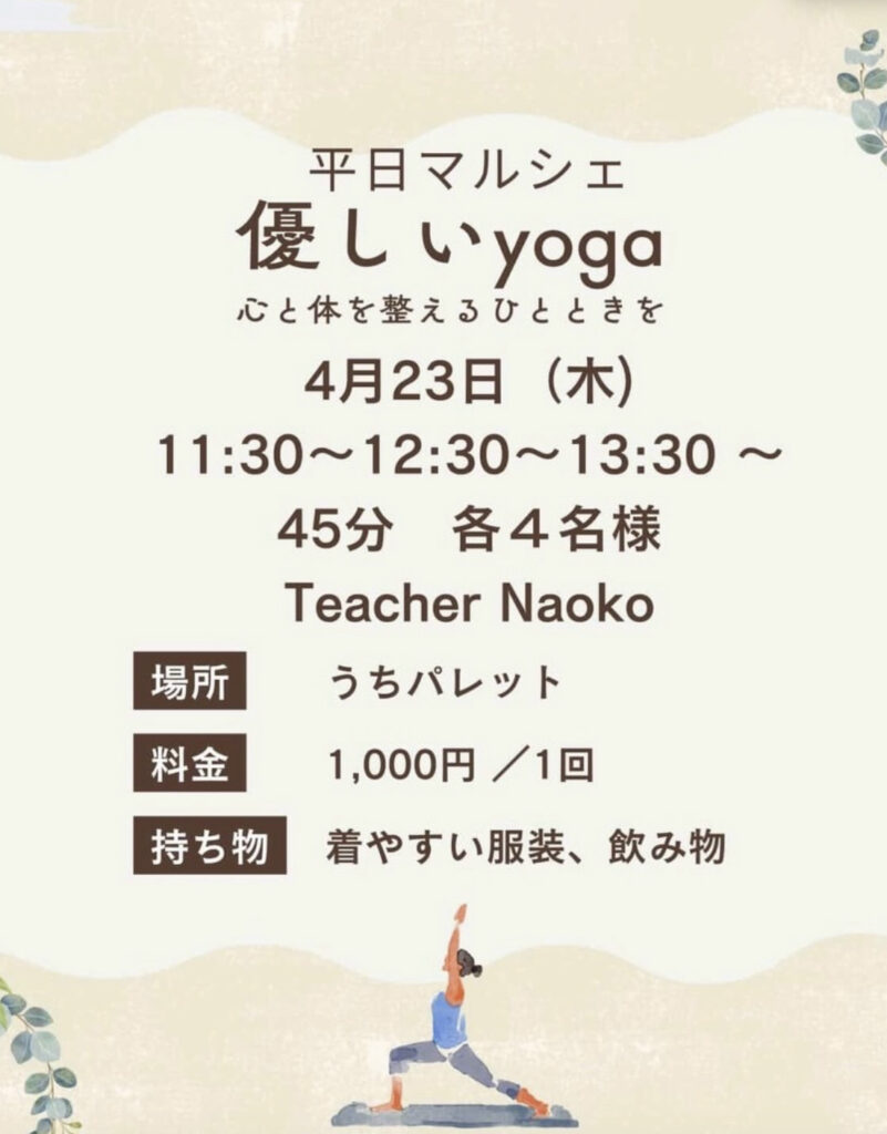 4月23日(木)11時~15時まで平日マルシェを開催します。